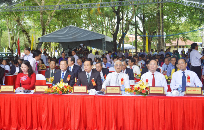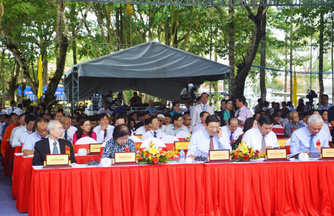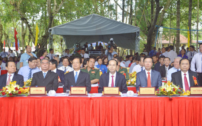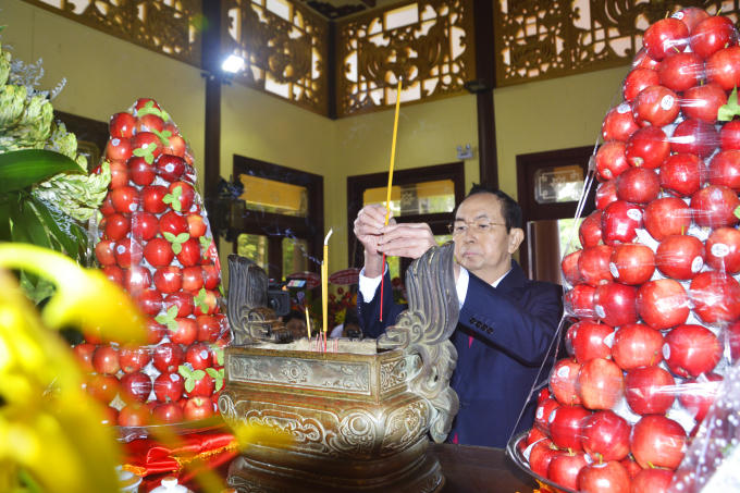 Trước đó, Chủ tịch nước Trần Đại Quang, cùng các cán bộ lãnh đạo, nguyên lãnh đạo Đảng, nhà nước và lãnh đạo tỉnh An Giang đã thắp hương đền thờ Bác Tôn tại khu lưu niệm Chủ tịch Tôn Đức Thắng.