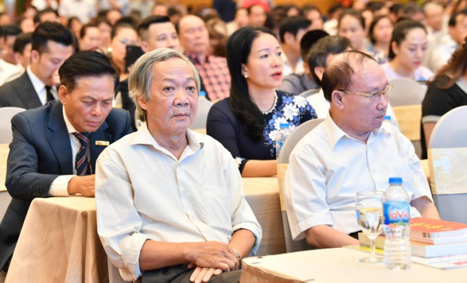 Tiến sĩ Đào Văn Hội, Bí thư Đảng ủy, Tổng biên tập Báo PLVN (thứ 3, từ trái sang); ông Trần Đức Vinh, Phó Tổng biên tập Báo Pháp luật Việt Nam (ngoài cùng bên phải) cùng nguyên lãnh đạo Báo PLVN.