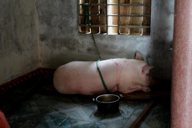 Cọn lợn nái này là "gia tài" may mắn ông còn giữ lại được.