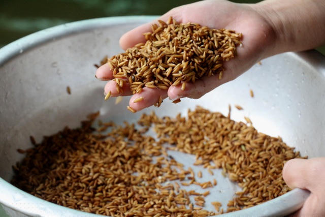 Chị Lê Thị Minh (xã Cẩm Duệ, huyện Cẩm Xuyên) khóc nghẹn khi 2 tấn lúa đã bị ngập nước lũ, nảy mầm