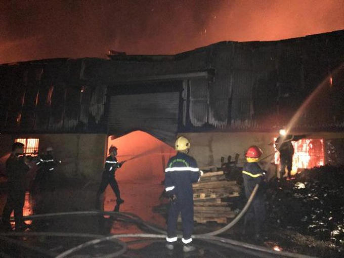 Nhà xưởng xảy ra cháy rộng gần 2.000 m2, bên trong là nguyên liệu giấy thành phẩm nên bắt lửa nhanh và lan rộng.