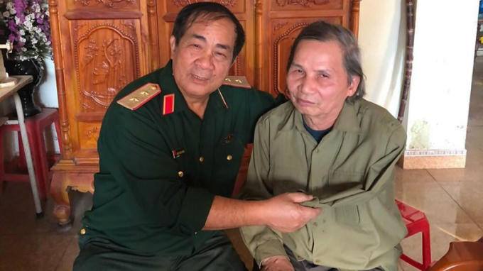 Trung tướng Anh hùng Đoàn Sinh Hưởng (trái) Trưởng Ban Liên lạc Lữ đoàn 273.