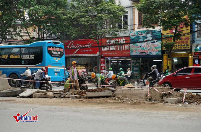 | Một số đoạn đường vẫn ngổn ngang vật liệu xây dựng |