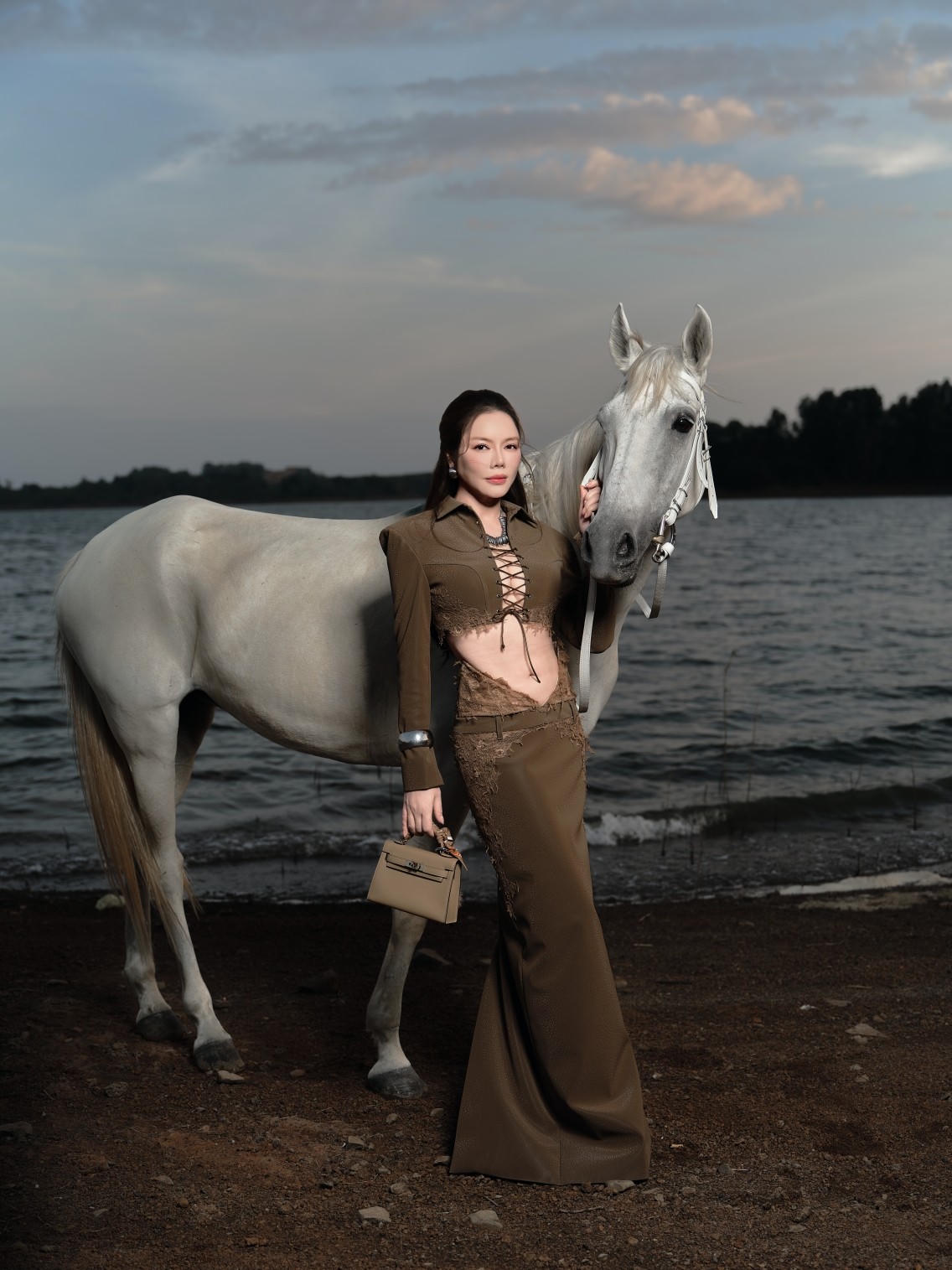 Lý Nhã Kỳ vừa thực hiện bộ ảnh chủ đề xuân với điểm nhấn đặc biệt là hình ảnh ngựa - biểu tượng của năm Bính Ngọ - được cô đưa trực tiếp về khuôn viên resort riêng, tạo nên tổng thể vừa sang trọng, vừa đậm tinh thần Tết truyền thống.