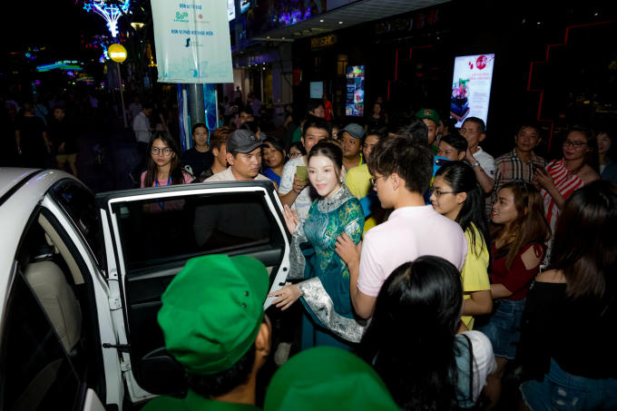 Hàng trăm fan hâm mộ đã vây kín Lý Nhã Kỳ khi nhận ra cô tại Phố đi bộ Nguyễn Huệ trong đêm khai mạc Lễ hội áo dài TP.HCM 2018.