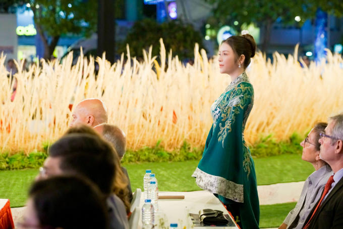 Lễ hội áo dài TP.HCM 2018 là sự kiện hiếm hoi Lý Nhã Kỳ nhận lời tham dự với tư cách khách mời. Cô chọn áo dài tông xanh có phần tay cách điệu, thêu cầu kỳ, theo phong cách vương tôn quý tộc phong kiến. Trang phục vừa vặn với vóc dáng, tôn được làn da trắng sứ và thần thái thanh cao của kiều nữ. Trang sức ngọc trai tinh tế của Paolo Piovan càng tôn lên vẻ đài các, cổ điển, trông như một hoàng hậu thời xưa.
