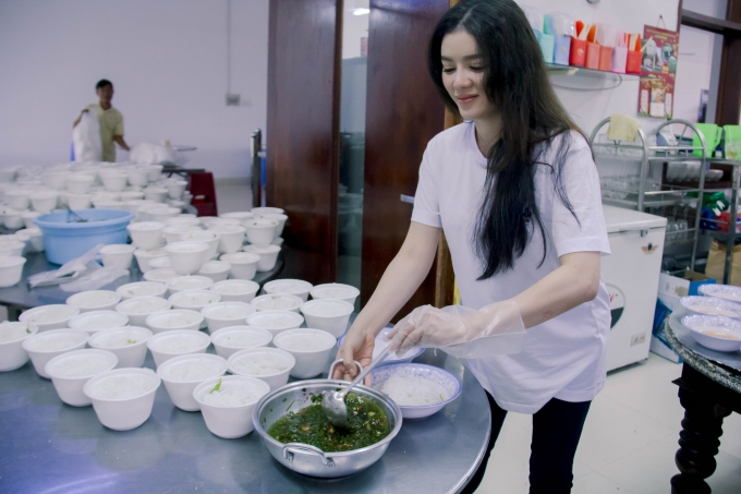 | Lỹ Nhã Kỳ nấu ăn cho 300 trẻ em mồ cô ở Bình Chánh TP HCM. |