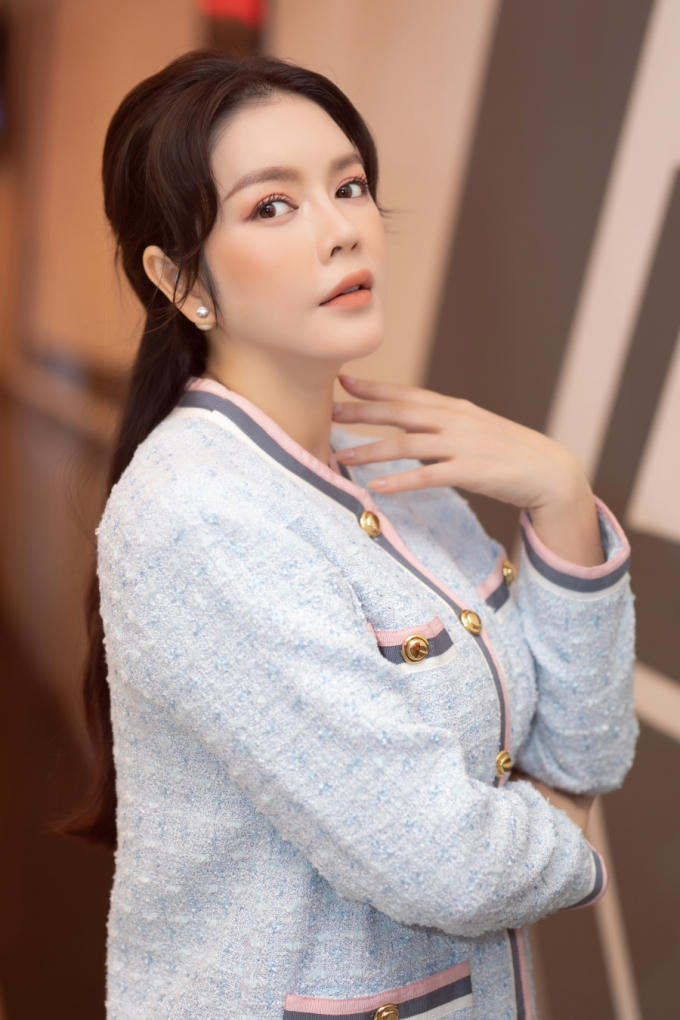 Người đẹp diện trang phục thanh lịch khoe nhan sắc trẻ trung.