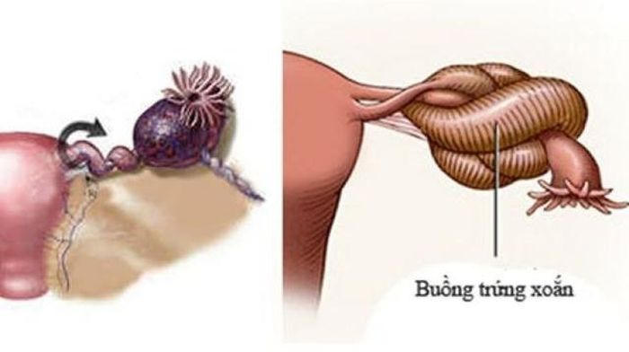 Hình ảnh trên siêu âm nghĩ đến một tình trạng buồng trứng bị xoắn đơn thuần, không tìm thấy các khối u buồng trứng liên quan.