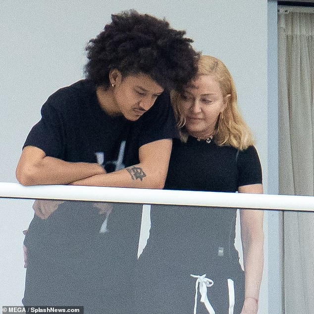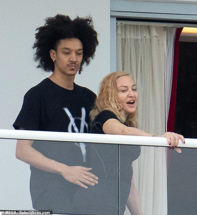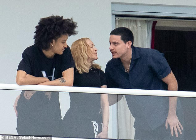 Đi nghỉ cùng Madonna còn có người đàn ông trẻ lạ mặt - được cho là bạn trai của con gái Madonna.