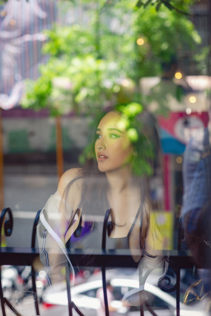 Hoa hậu Mai Phương Thuý nhận về nhiều ý kiến trái chiều bởi trang phục gợi cảm quá mức. Người đẹp diện độc chiếc áo vest đen, không cài nút, để lộ khe ngực lấp ló bên ban công một toà nhà.