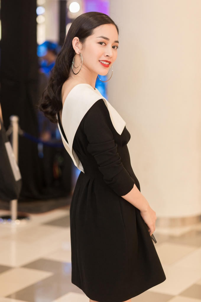 “Ngọc nữ” Mai Thanh Hà chọn cho mình hình ảnh thanh lịch trong một thiết kế có tông màu trắng đen. Người đẹp kết hợp lối trang điểm tươi trẻ, rạng ngời tôn lên những đường nét thanh thoát trên gương mặt.