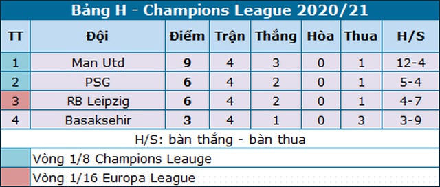 Turuc sút phạt rút ngắn tỉ số xuống 1-3 cho đội khách ở phút 75, đến phút bù giờ thứ nhất, James ghi bàn ấn định chiến thắng 4-1 cho “Quỷ đỏ”. Với ba điểm từ trận đấu trên sân nhà, Man Utd tiếp tục đứng đầu bảng H với 9 điểm, hơn PSG 3 điểm. Ở trận đấu cùng giờ, PSG đã thắng RB Leipzig 1-0 để vươn lên đứng nhì bảng H, bằng điểm RB Leipzig.