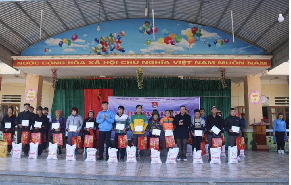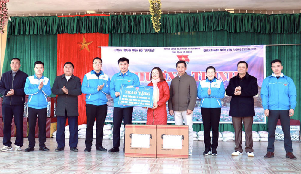 Đồng chí Nguyễn Đức Thông, Phó Chánh Văn phòng Sở Tư pháp thành phố Hồ Chí Minh và các đồng chí trong Ban Thường vụ Đoàn Bộ Tư pháp, Văn phòng Chính phủ, Ban Thường vụ Tỉnh Đoàn Hà Giang và đại diện Ban Thường vụ Huyện ủy, Hội đồng nhân dân, Ủy ban nhân dân, Ủy ban Mặt trận Tổ quốc huyện Quản Bạ đã đến thăm và trao quà tết cho các gia đình có hoàn cảnh khó khăn và học sinh nghèo của xã Tả Ván, huyện Quản Bạ, tỉnh Hà Giang nhân dịp tết Nguyên đán Quý Mão của dân tộc.