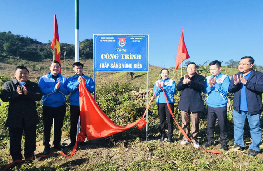 Nhân dịp này, Đoàn công tác cũng đã tổ chức Lễ dâng hương tại Nghĩa trang liệt sỹ Quốc gia Vị Xuyên, Đài hương 468; thăm, tặng quà, động viên cán bộ chiến sỹ đồn biên phòng Thanh Thủy, đồn biên phòng Lũng Cú, tổ chức lễ chào cờ tại Cột cờ Lũng Cú trên đỉnh núi Rồng linh thiêng nơi địa đầu của Tổ quốc và cắt băng khánh thành công trình “Thắp sáng biên cương” đây là công trình thanh niên chào mừng thành công Đại hội Đoàn các cấp và Đại hội Đoàn toàn quốc lần thứ XII với mong muốn công trình sẽ góp phần chung sức cùng cấp ủy, chính quyền địa phương sớm hoàn thành các tiêu chí về xây dựng nông thôn mới và thuận lợi cho việc đi lại của người dân trong xã và tuần tra biên giới của cán bộ chiến sỹ Đồn biên phòng.