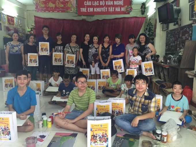 | Trao quà từ thiện tại CLB văn nghệ trẻ em khuyết tật Hà Nội. |