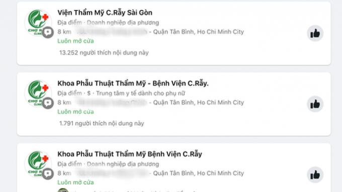 Các fanpage mạo danh thương hiệu Bệnh viện Chợ Rẫy đang quảng cáo tràn lan trên mạng xã hội.