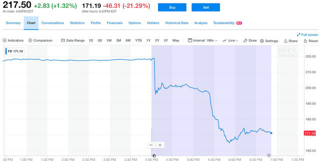 Một giờ sau khi cuộc họp công bố kết quả kinh doanh diễn ra, cổ phiếu Facebook giảm 8%. Nhưng đó chưa phải là giây phút tồi tệ nhất. Đỉnh điểm là lúc Giám đốc tài chính David Wehner bắt đầu nói về triển vọng tài chính của công ty. Theo đó ông này đưa ra cảnh báo rằng Facebook dự kiến tốc độ tăng trưởng doanh thu trong thời gian tới sẽ giảm so với mức 42% trong quý 2 và biên lợi nhuận hoạt động giảm từ mức 44%.