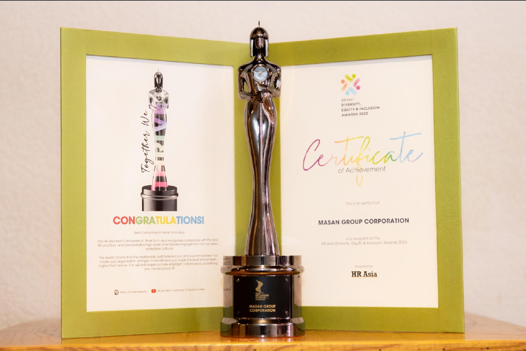 Là doanh nghiệp chiến thắng hạng mục giải thưởng đặc biệt “HR Asia Diversity, Equity, and Inclusion” - Doanh nghiệp có môi trường làm việc đa dạng, bình đẳng và hòa nhập, Masan được đánh giá là một trong những doanh nghiệp có những bước tiến đáng kể trong việc tạo ra môi trường làm việc đa dạng và hòa nhập.