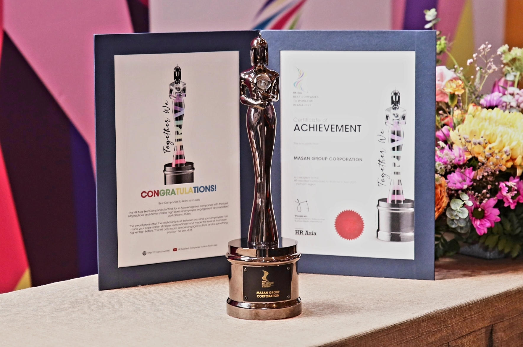 Tại lễ trao giải HR Asia Awards vừa qua, Masan Group được vinh danh là “Nơi làm việc tốt nhất châu Á 2023” (Best Companies to Work for in Asia). Đồng thời, Công ty cũng chiến thắng hạng mục giải thưởng đặc biệt “HR Asia Diversity, Equity, and Inclusion” - Doanh nghiệp có môi trường làm việc đa dạng, bình đẳng và hòa nhập.