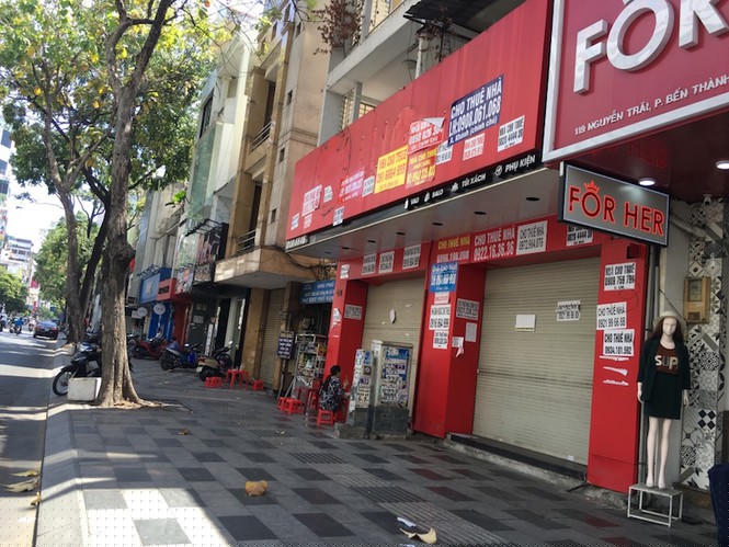 Hàng loạt mặt bằng kinh doanh nhiều tuyến đường ở trung tâm TPHCM trước đây được khách thuê đua nhau săn đón thì nay bỏ hoang. Chủ nhà treo bảng cho thuê cả tháng cũng không có ai hỏi thăm vì dịch Covid-19.