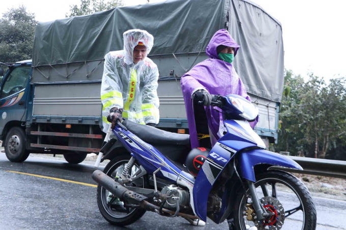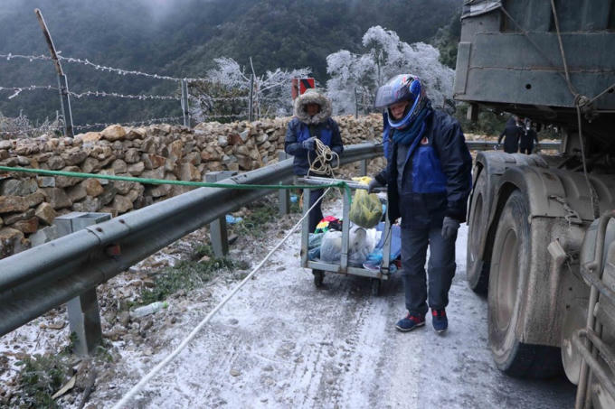 Mặt đường đóng băng, phương tiện không thể di chuyển trên đèo Ô Quý Hồ