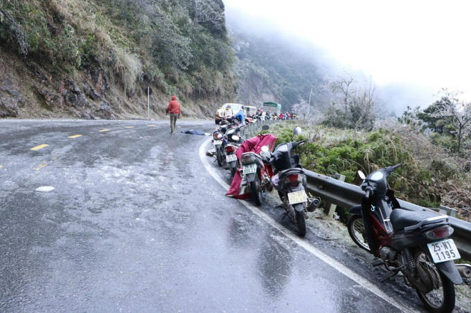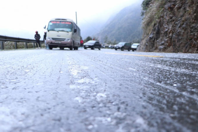 Ngày 11/1, mặt đường trên đoạn đèo Ô Quý Hồ thuộc địa phận tỉnh Lai Châu đi Sa Pa, xảy ra hiện tượng mặt đường bị đóng băng, trơn trượt, các phương tiện tham gia giao thông không thể di chuyển.