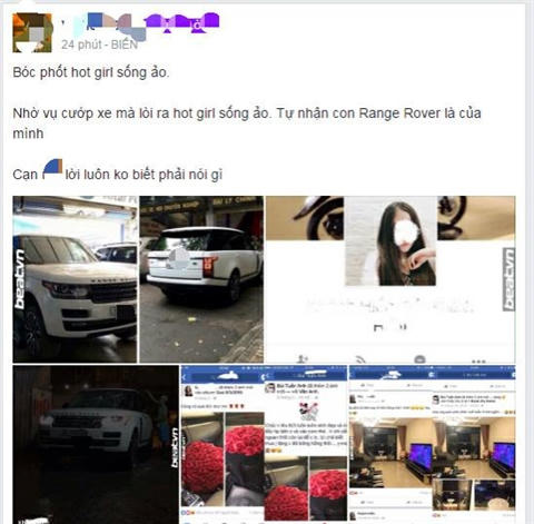Cũng bởi thông tin này được chia sẻ rầm rộ mà một sự thật đã được phơi bày. Qua quan sát biển số, màu sắc của chiếc "xế hộp" dân mạng đã tìm ra một hot girl "sống ảo" vẫn luôn tự nhận chiếc Range Rover là của mình.
