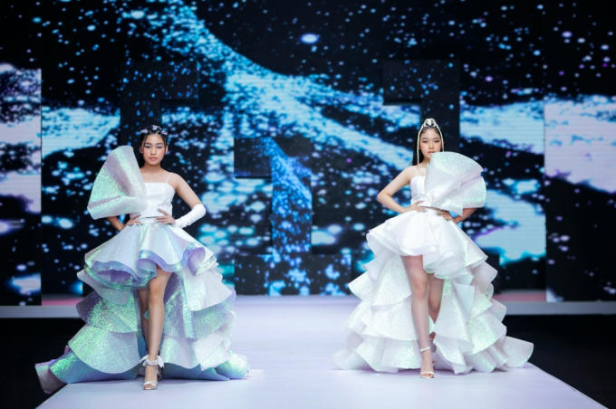 Được lựa chọn diễn trước phần kết màn cho BST “Future Land”, cặp đôi mẫu nhí Khánh Ngọc - Suri Phương Anh đã chinh phục người xem trong show thời trang không chỉ bởi ngoại hình xinh đẹp mà còn bởi những bước catwalk chuyên nghiệp và khả năng làm chủ sàn diễn.