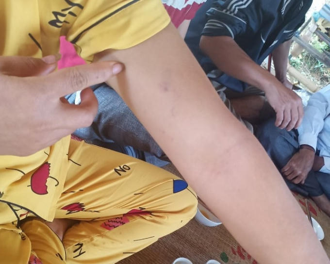 Người nhà ông Minh bị xô xát dẫn đến bầm tím tay.