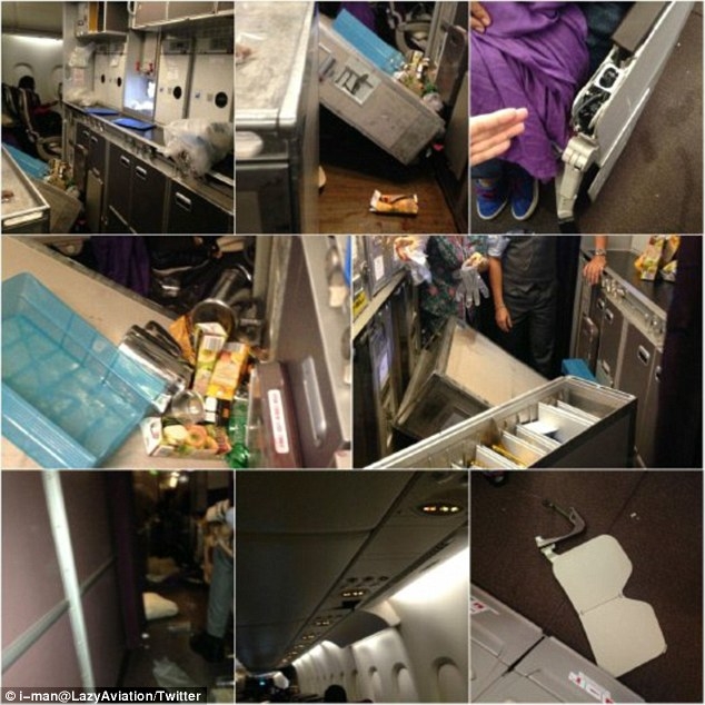 | Đồ đạc bị xáo trộn do máy bay đi vào vùng nhiễu động. (Ảnh: Daily Mail). |