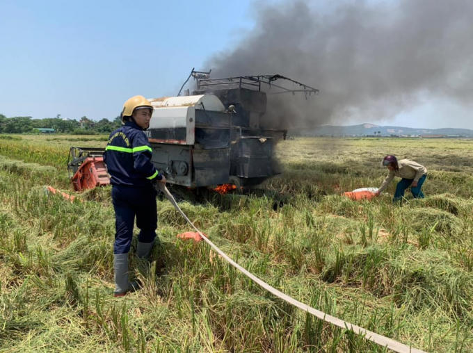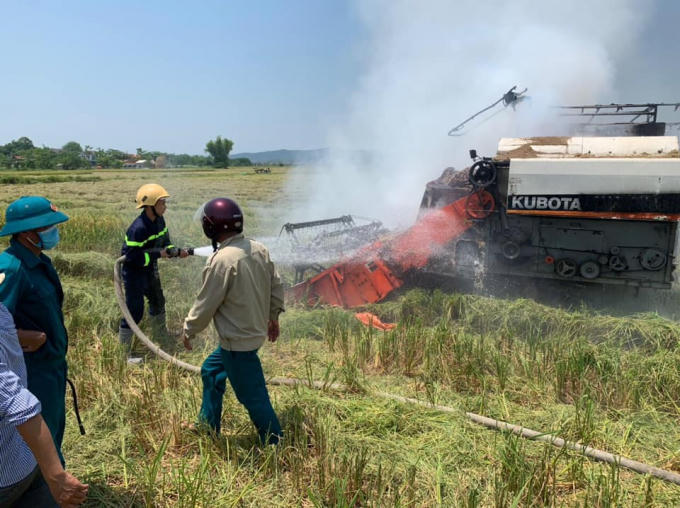 Tại thời điểm xảy ra cháy, chiếc máy gặt đang hoạt động trên đồng. Mặc dù lực lượng chữa cháy đã nhanh chóng có mặt tại hiện trường nhưng do thời tiết nắng gắt, xung quanh nhiều rơm rạ, chất dễ cháy nên ngọn lửa phát triển mạnh, chiếc máy bị hư hại khá nhiều. Rất may vụ cháy không gây thiệt hại về người.