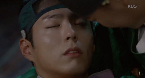 Sau màn chạy dưới mưa, Thái tử Lee Young lại "đốn tim" khán giả khi không ngần ngại bế bổng Ra On rồi đặt tiểu thái giám lên đùi và nhẹ nhàng dùng khăn lau mặt cho cô. Về phía Ra On, tuy ban đầu có chút ngại ngùng không quen, nhưng trước ánh mắt ấm áp và hành động ân cần mà Thái tử dành cho mình, cô đã không giấu nổi nụ cười hạnh phúc.