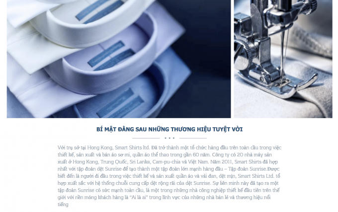 Với trụ sở tại Hong Kong, Smart Shirts ltd. Đã trở thành một tổ chức hàng đầu trên toàn cầu trong việc thiết kế, sản xuất và bán áo sơ mi, quần áo thể thao trong gần 60 năm.
