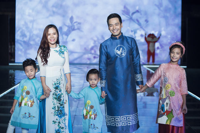 MC Phan Anh lần đầu diện áo dài cùng vợ và 3 con trên sàn catwalk chuyên nghiệp