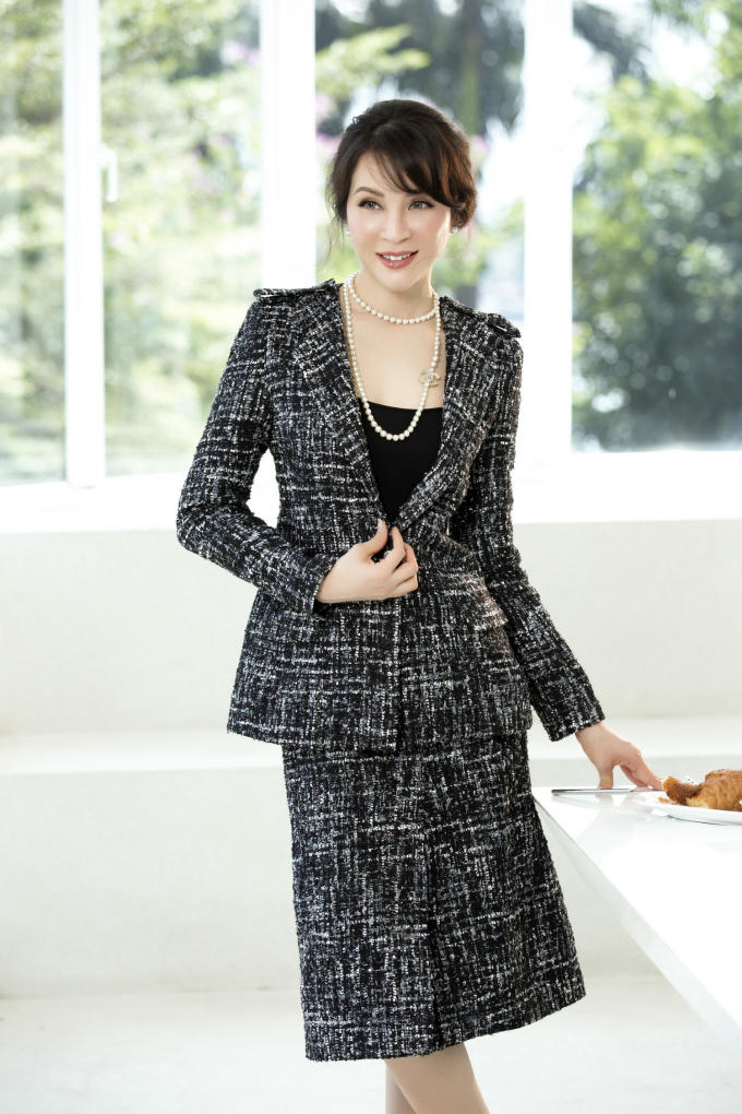 MC Thanh Mai diện vest xẻ ngực gợi cảm ở tuổi 45