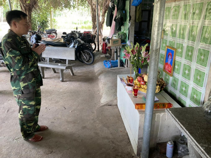 Được tin mẹ mất, Trung tá Lê Quốc Thắng đang thực hiện nhiệm vụ tại điểm chốt phòng, chống dịch Covid-19 số 8 - Đồn biên phòng Tân Hà (huyện Tân Châu), tỉnh Tây Ninh, đã cùng đơn vị lập bàn thờ tạm để bái vọng từ biên giới Tây Nam.