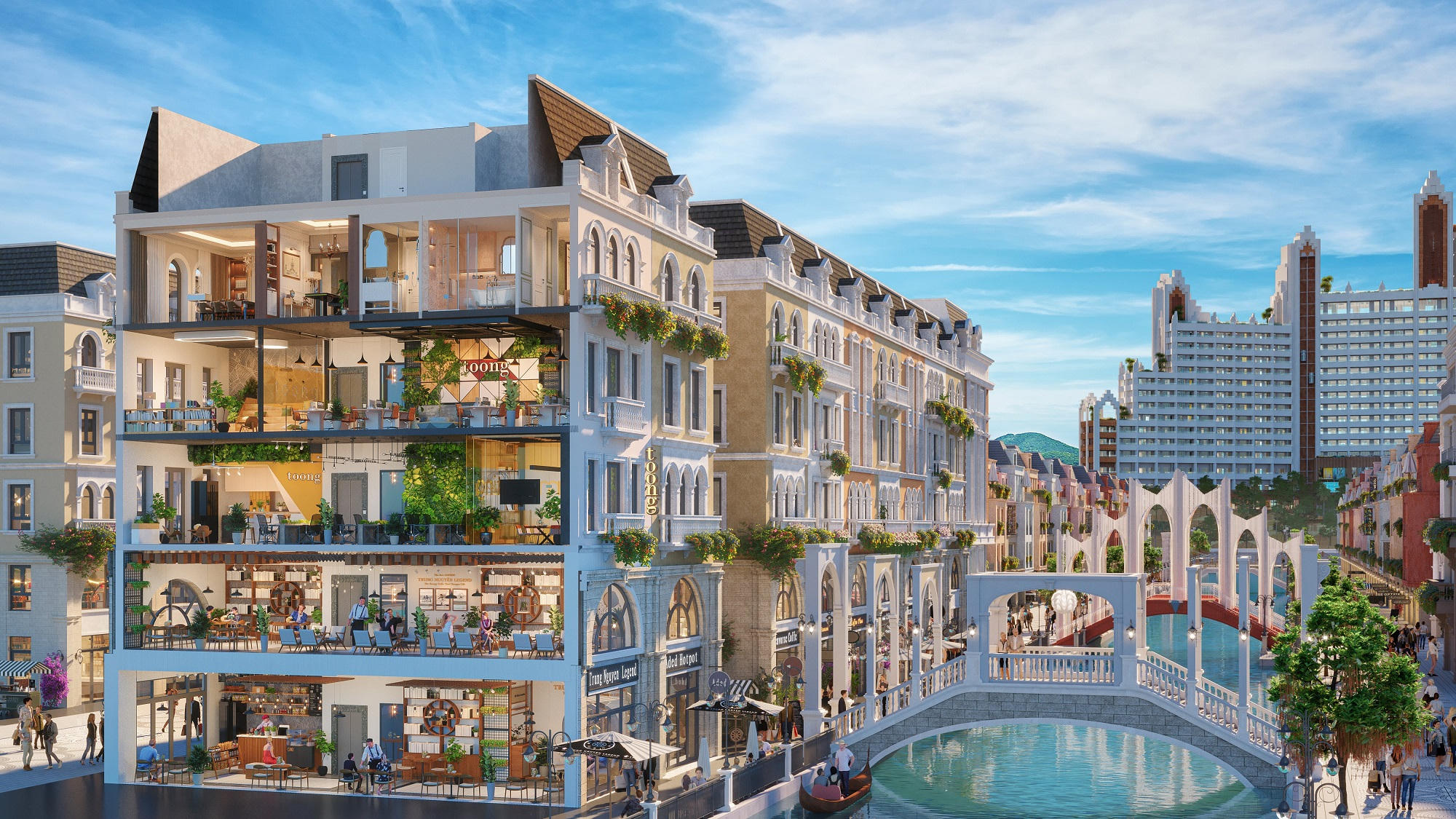 Ngay trung tâm dự án, phân khu Canal District sở hữu hệ tiện ích - dịch vụ đa sắc làm nên một “vương quốc không ngủ”. 36 tuyến phố đa năng hoạt động 24/24 với mô hình kinh doanh đột phá Bizhouse sẽ mang đến những trải nghiệm về nghỉ dưỡng, giải trí, mua sắm, giao thương sầm uất cho du khách. Ngoài ra, MerryLand Quy Nhơn còn có dòng sản phẩm nhà phố trung tâm bán đảo (townhouse) đa năng, giàu kết nối, vừa có thể lưu trú vừa giàu giá trị khai thác thương mại.