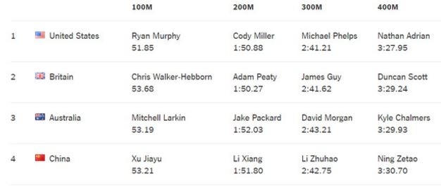 Ở chung kết nội dung 4x100 m hỗn hợp tiếp sức nam vừa kết thúc sáng 14/8 (giờ Việt Nam), Phelps cùng các đồng đội ở tuyển bơi lội nam của Mỹ xuất sắc về nhất về thành tích 3 phút 27 giây 95, đây cũng là kỷ lục Olympic.