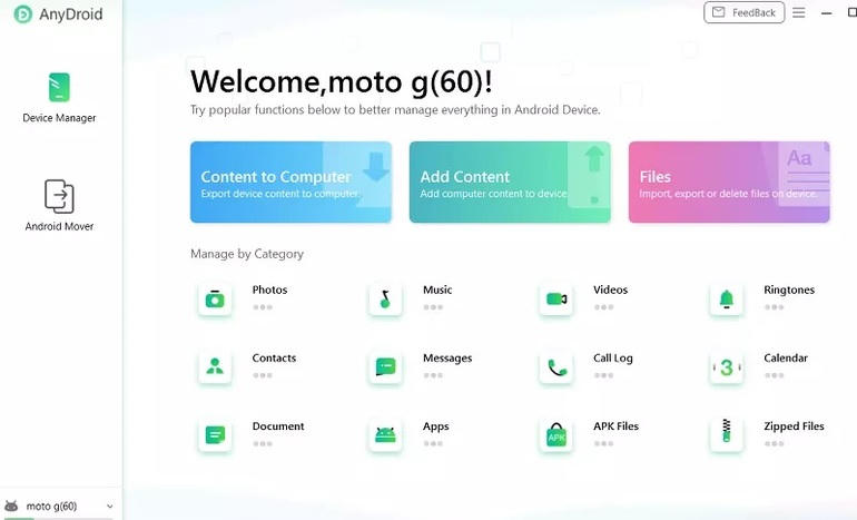 iMobie AnyDroid là phần mềm cho phép người dùng sao lưu các dữ liệu trên smartphone như tin nhắn, danh bạ, lịch sử cuộc gọi, hình ảnh, ứng dụng, file nhạc, video… vào máy tính một cách nhanh chóng và dễ dàng. Những dữ liệu này sau đó có thể phục hồi vào smartphone trong trường hợp bạn cài đặt lại thiết bị, hoặc có thể chuyển sang một smartphone mới.