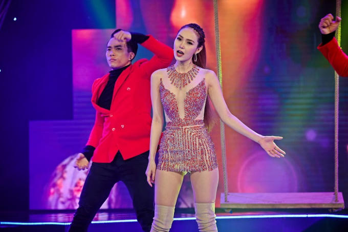 Sân khấu âm nhạc của Minh Hằng được dàn dựng đẹp mắt, khi lãng mạn, nhẹ nhàng với balad, khi ấn tượng với những bài EDM sôi động. Trong trang phục bó sát, tôn lên đường cong cơ thể quyến rũ, Minh Hằng tự tin thể hiện những bước nhảy mạnh mẽ với vũ đoàn, khiến khán giả không thể rời mắt theo chuyển động của cô.