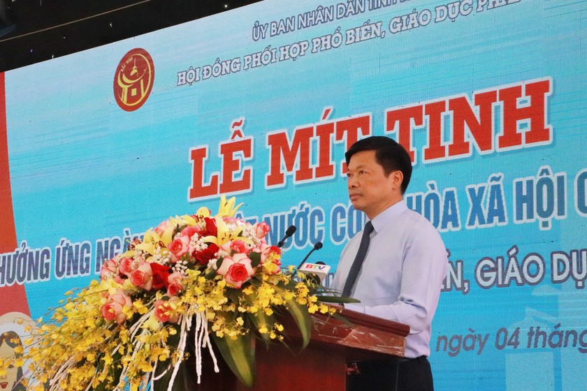 | Ông Đào Quang Khải, Phó Chủ tịch UBND tỉnh, Chủ tịch Hội đồng Phối hợp PBGDPL tỉnh phát biểu tại buổi lễ. |