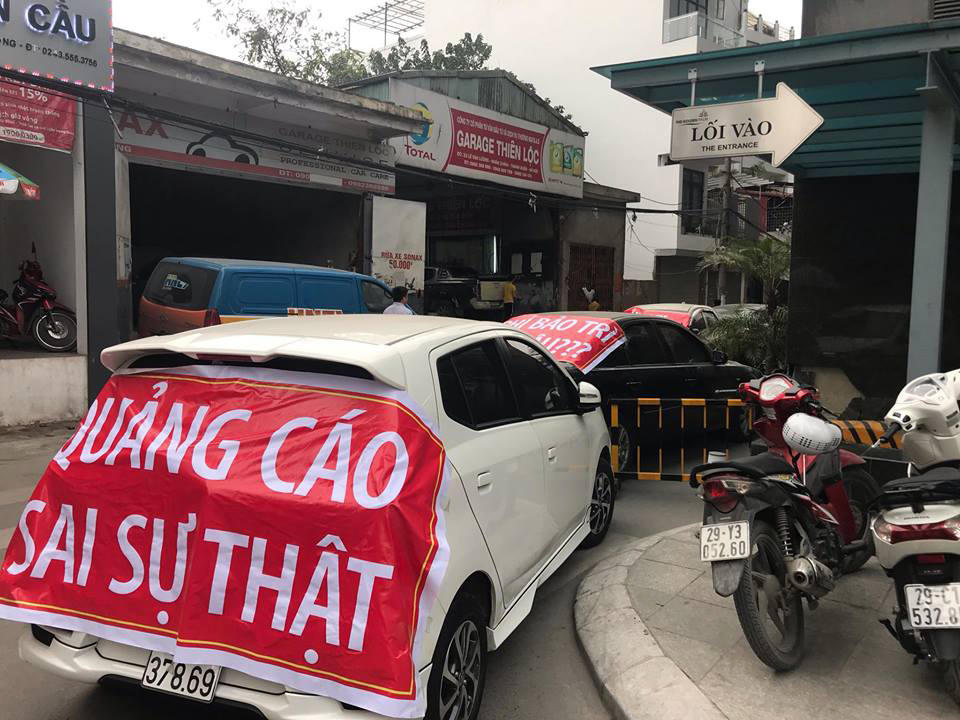 Khách hàng tại một chung cư ở Hà Nội căng băng rôn tố chủ đầu tư quảng cáo sai sự thật.