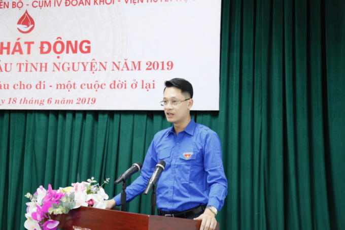 Phó Bí thư Đoàn thanh niên Bộ Tài chính Nguyễn Hữu Thịnh phát động chương trình hiến máu tình nguyện năm 2019.