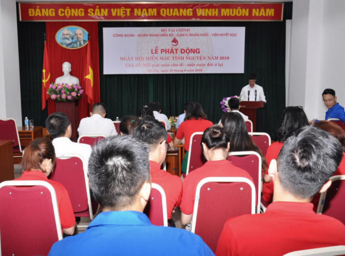 Ngày 18/6, tại trụ sở Bộ Tài chính, Đoàn thanh niên Bộ Tài chính phối hợp với Công Đoàn Bộ, Cụm 4 - Đoàn Khối các cơ quan Trung ương, Viện Huyết học và truyền máu Trung ương tổ chức Lễ phát động chương trình Hiến máu tình nguyện 2019 với chủ đề “Mỗi giọt máu cho đi - Một cuộc đời ở lại”.