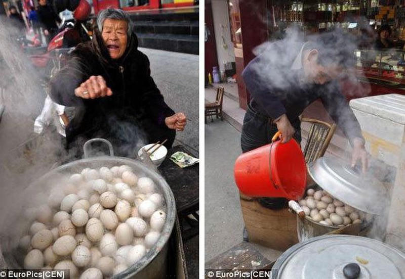 Ông Ge Yaohua, một người bán trứng, giới thiệu: “Nhà tôi ăn trứng trong mọi bữa ăn. Các gia đình ở Đông Dương đều thích chúng. Trứng luộc kiểu này rất tốt cho sức khỏe, tránh bệnh đau lưng của người già, tiếp thêm năng lượng làm việc”.