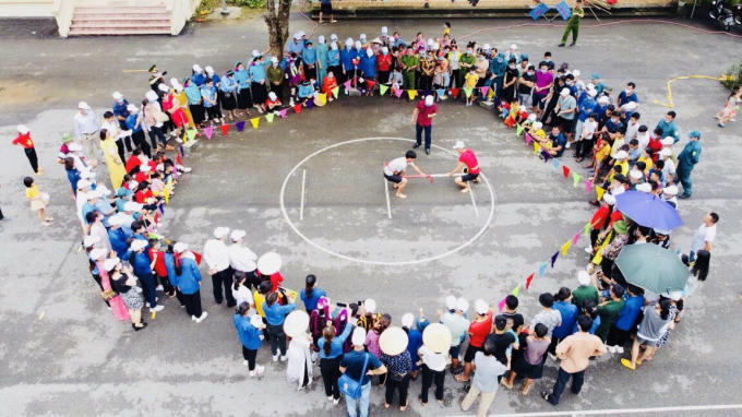 Trò chơi thi đẩy gậy hấp dẫn, thu hút khán giả tới xem. (Ảnh: Tổng cục Du lịch)
