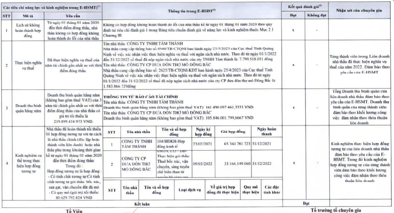 Liên danh Công ty TT – Công ty CP Đưa đón thợ mỏ Đông Bắc – Công ty CP Đầu tư và Dịch vụ vận tải Trung Nghĩa tham dự và trúng thầu, mức tiết kiệm cho ngân sách hơn 24 tỷ đồng, tương đương 2,9% và tiếp tục là không có nhà thầu cạnh tranh.