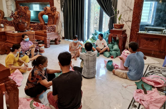 Cả gia đình đang chuẩn bị từng phần quà cho người dân.