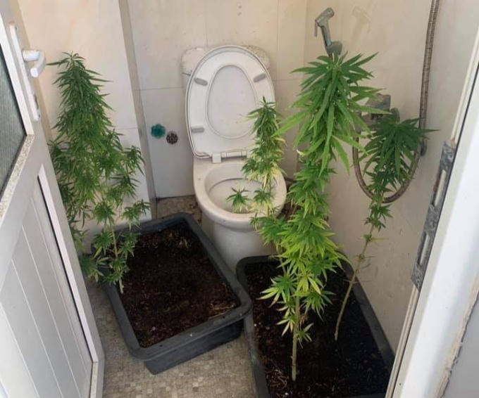 Quá trình kiểm tra, tổ công tác phát hiện trong phòng vệ sinh tầng thượng của căn nhà có trồng 4 cây cần sa, có chiều cao trung bình gần 1m.